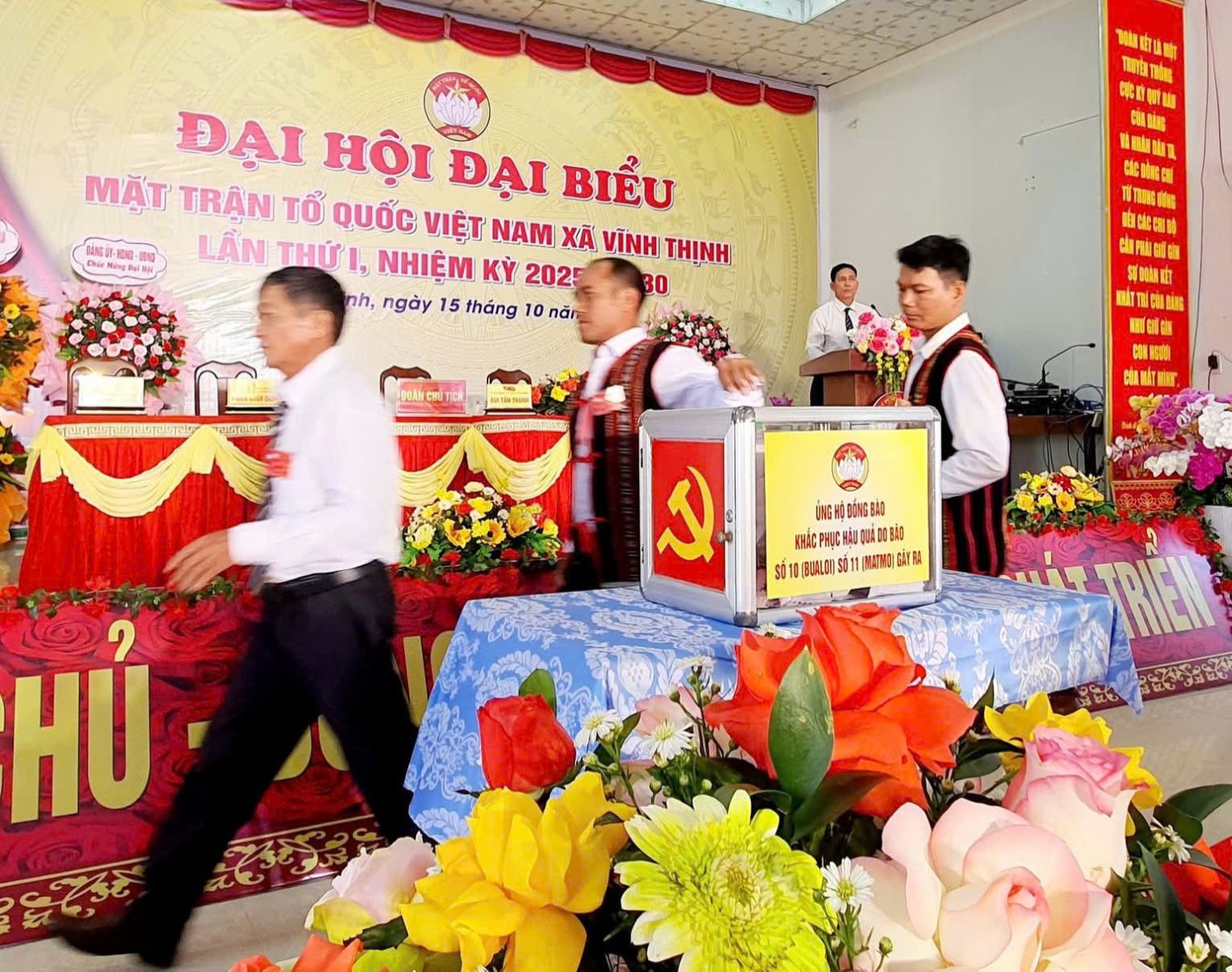 Ngày 15/10/2025, Ủy ban Mặt trận Tổ quốc Việt Nam xã Vĩnh Thịnh đã tổ chức Đại hội đại biểu lần thứ I, nhiệm kỳ 2025–2030 với tinh thần “Đoàn kết – Dân chủ – Đổi mới – Sáng tạo – Phát triển”. Dự và chỉ đạo Đại hội có đồng chí: Phạm Mạnh Hùng – Phó Chủ tịch Ủy ban MTTQ Việt Nam tỉnh, Chủ tịch Hội Cựu chiến binh tỉnh Gia Lai; đồng chí Bùi Tấn Thành – Bí thư Đảng ủy, Chủ tịch HĐND xã; đồng chí Đinh Thị Nơk – Phó Bí thư Thường trực Đảng ủy xã; đồng chí Huỳnh Đức Bảo – Phó Bí thư Đảng ủy, Chủ tịch UBND xã, cùng 85 đại biểu tiêu biểu, đại diện cho khối đại đoàn kết toàn dân trên địa bàn xã.